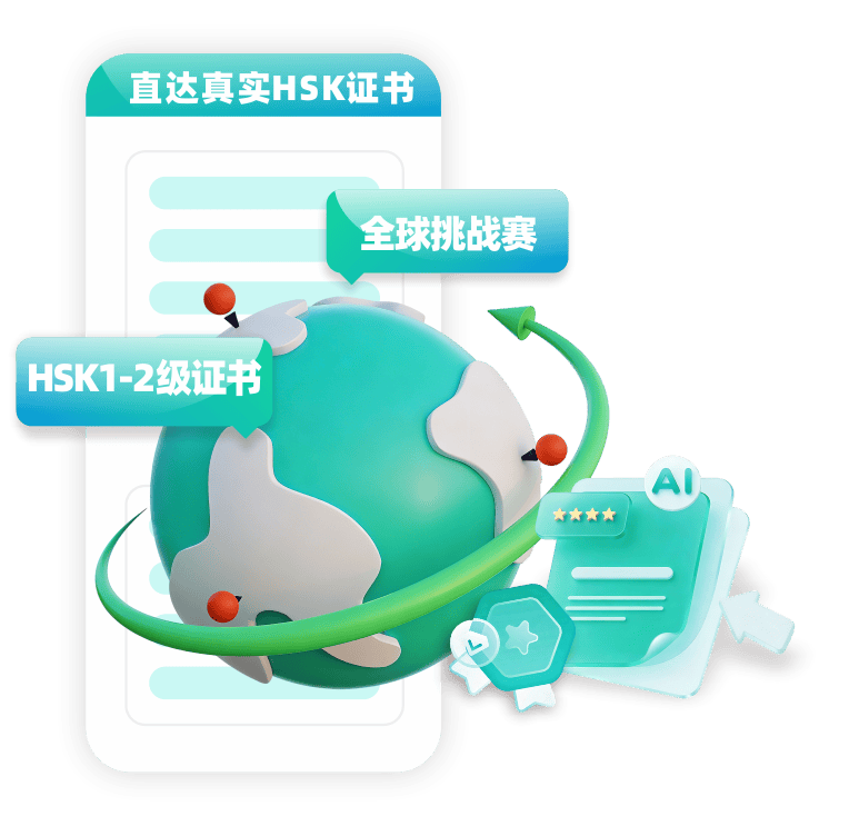 日常学习与智能评估能力达标,即可直接获取官方真实的 HSK1-2级证书。还可参与全球挑战赛,赢取奖励。